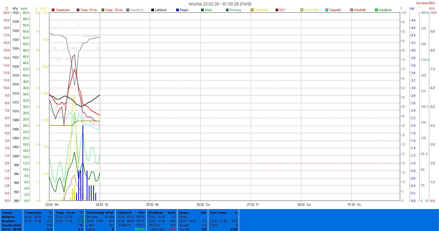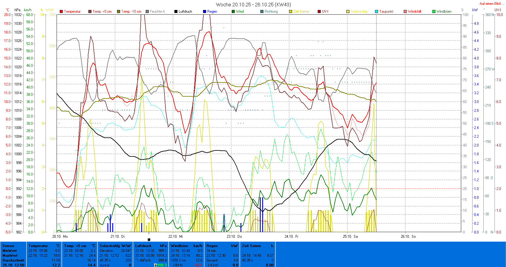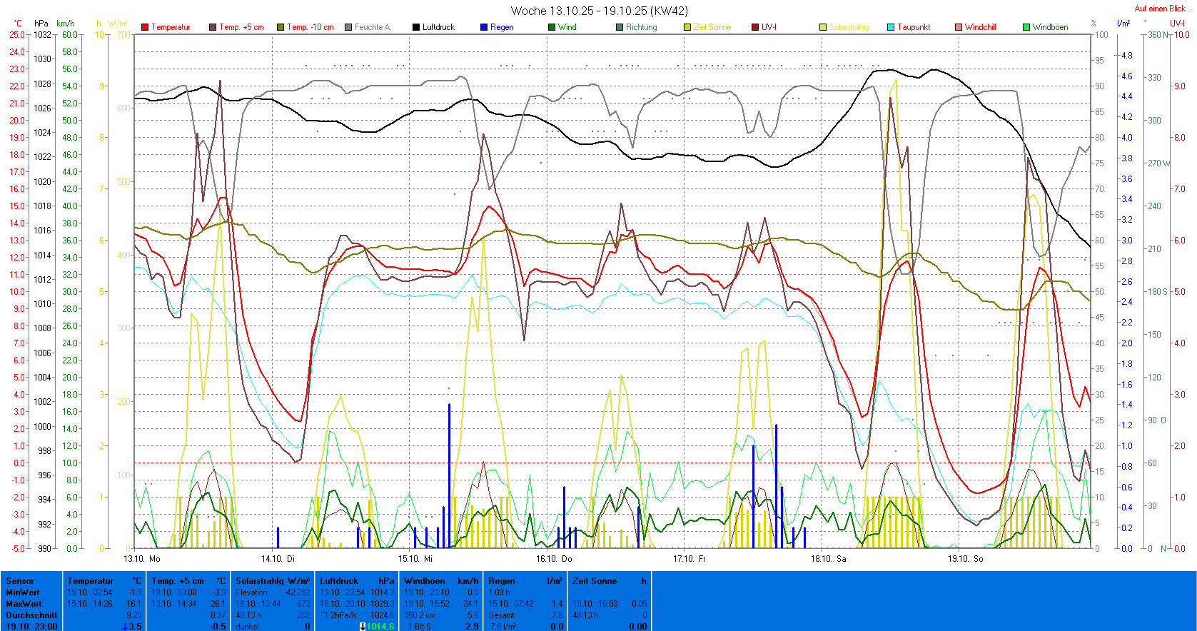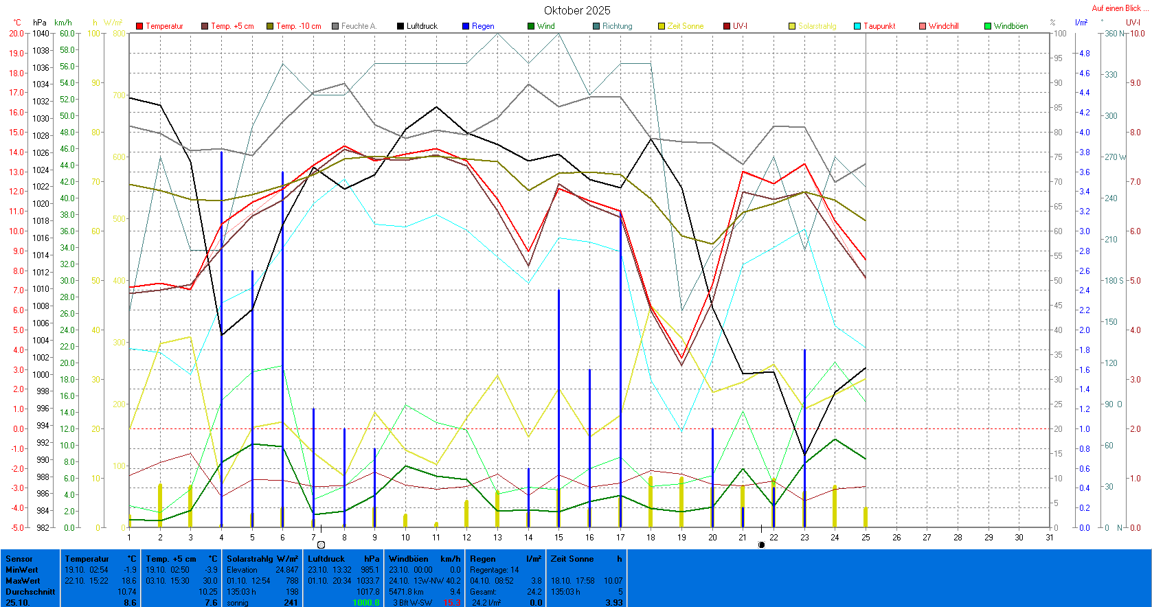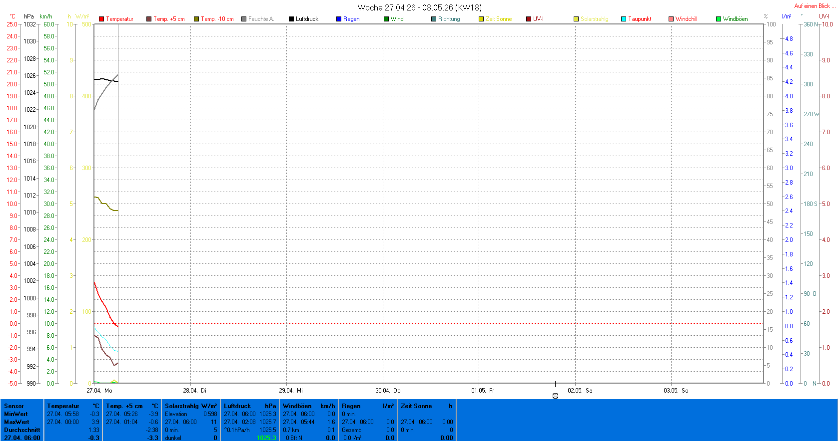 | Die dargestellten Werte repräsentieren die Daten des aktuellen Tages! Der Luftdruck ist auf Meereshöhe bezogen! |