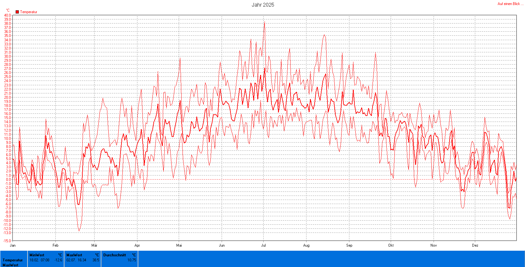 die höchste Temperatur des Jahres mit 38,5 °C am 02. Juli 2025.