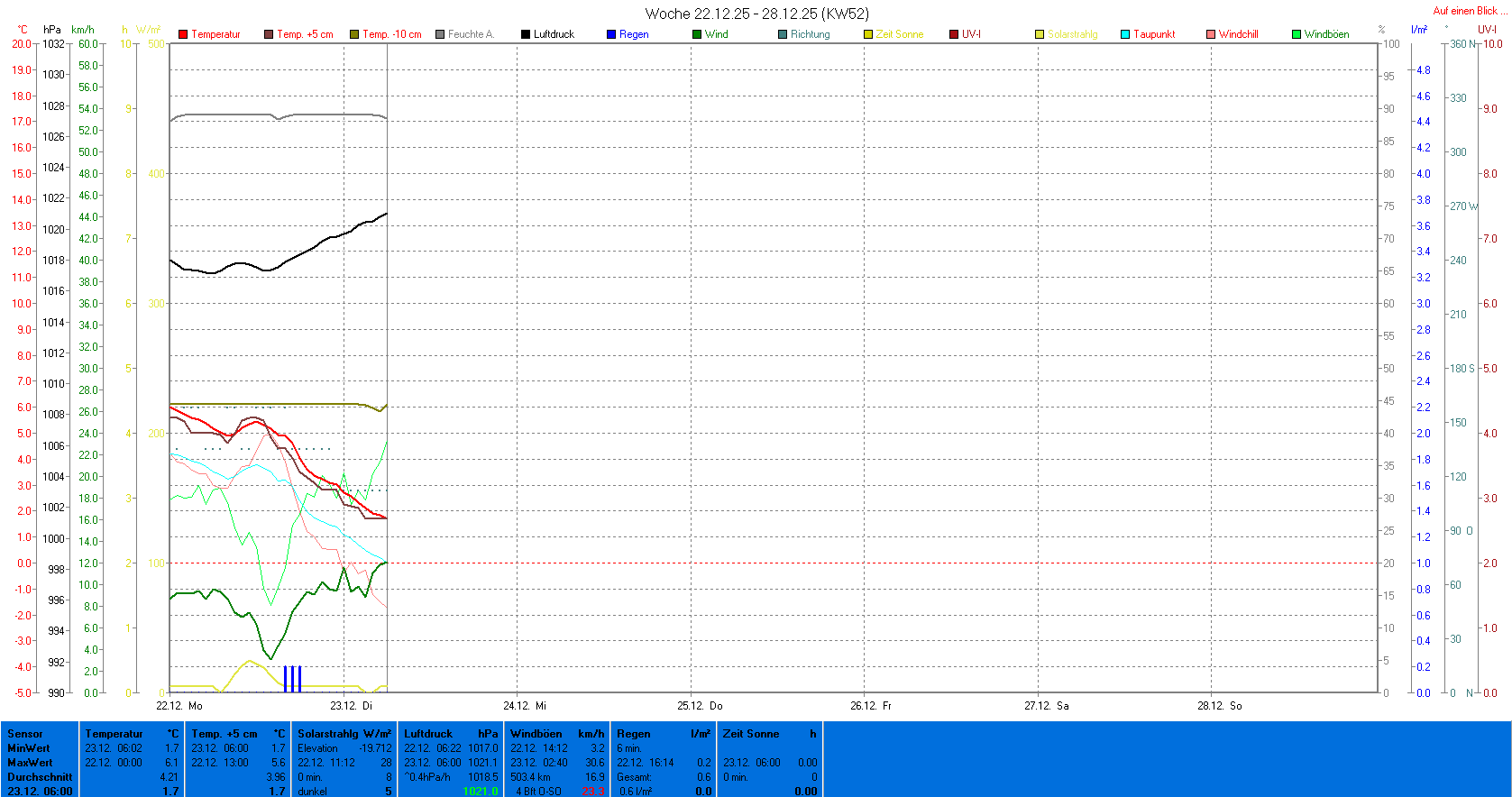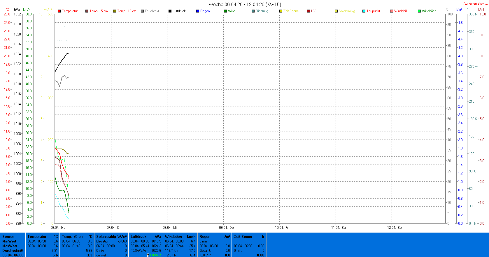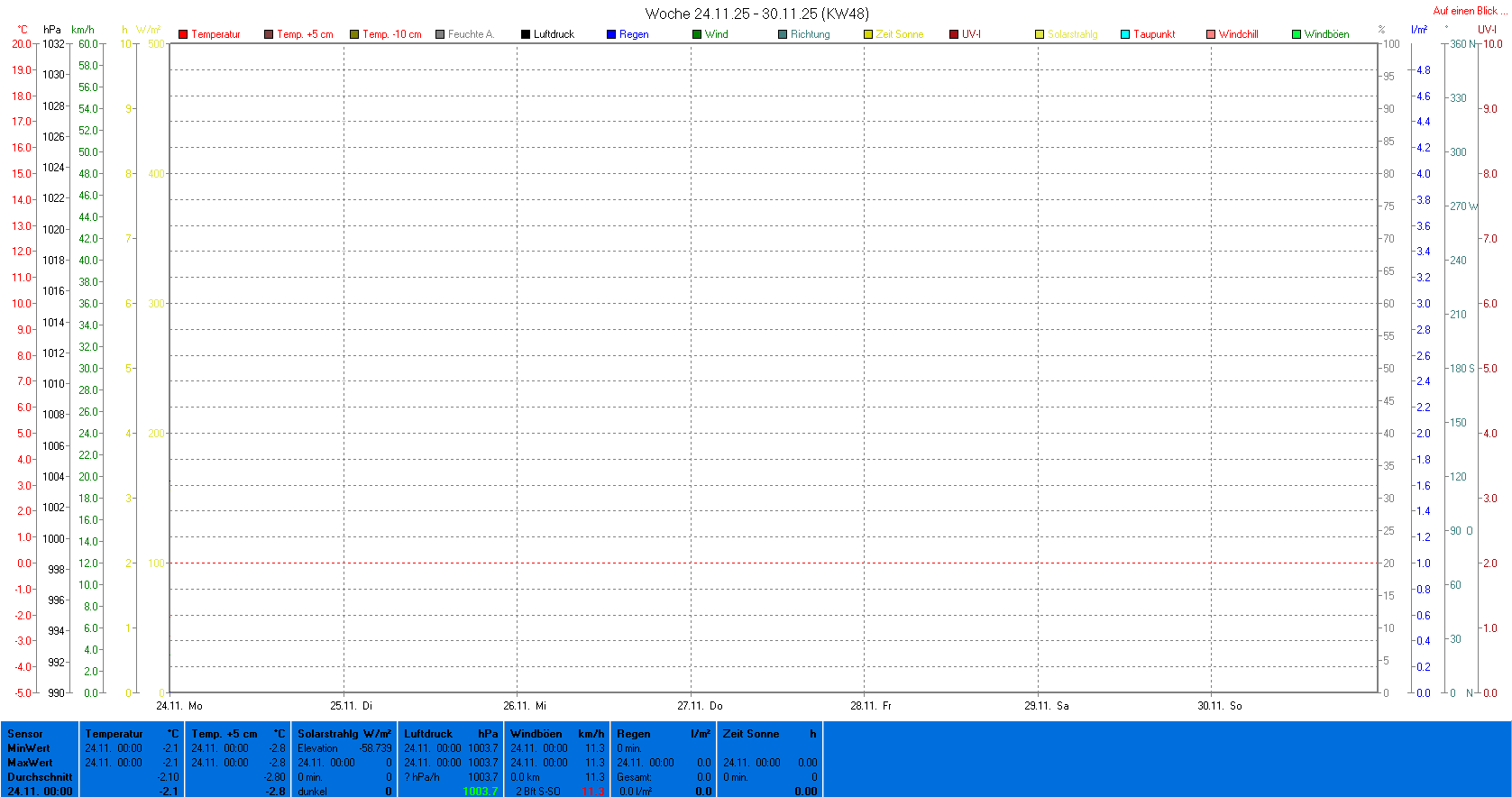 | Die dargestellten Werte repräsentieren die Daten des aktuellen Tages! Der Luftdruck ist auf Meereshöhe bezogen! |