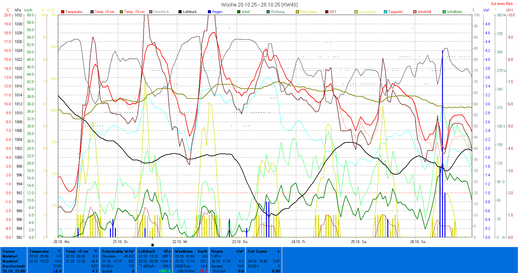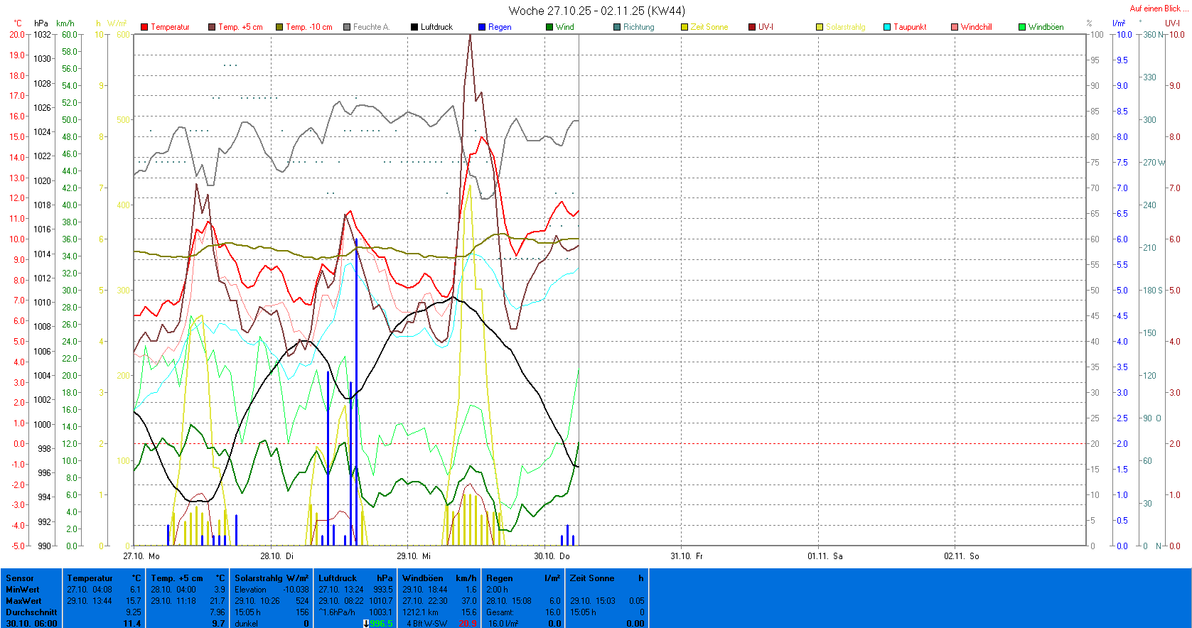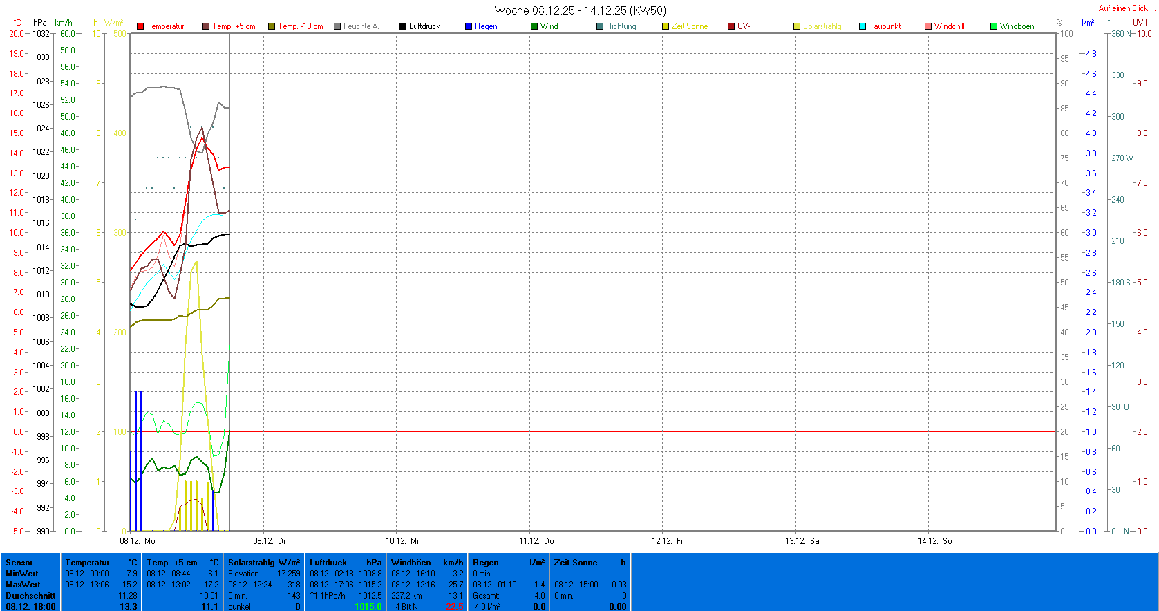 | Die dargestellten Werte repräsentieren die Daten des aktuellen Tages! Der Luftdruck ist auf Meereshöhe bezogen! |
