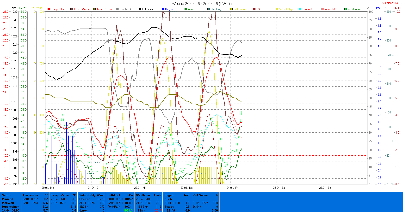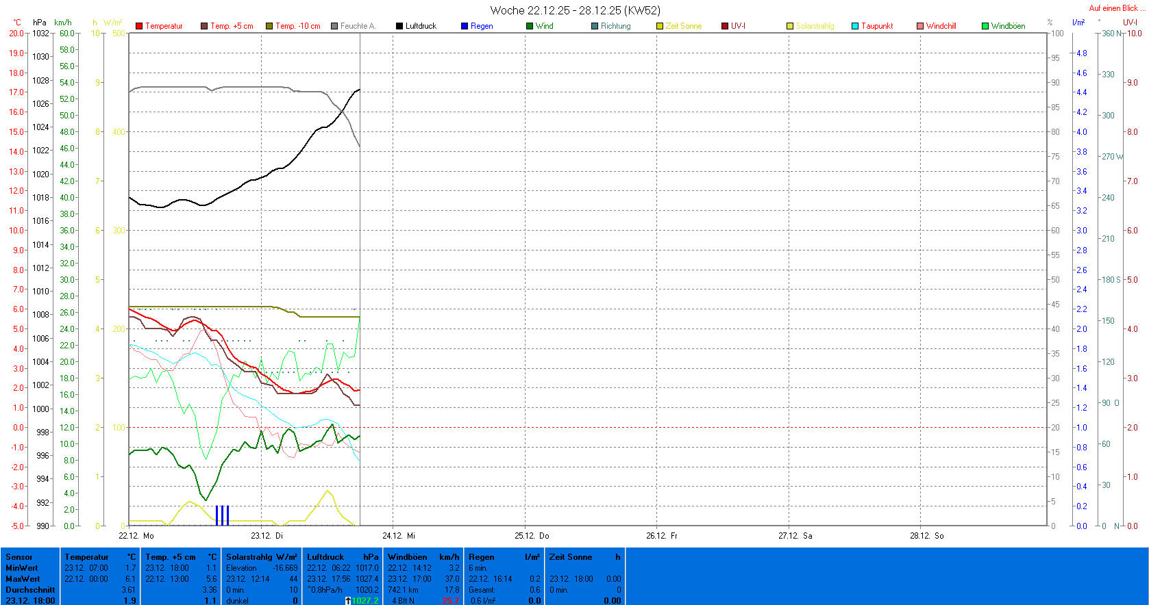 | Die dargestellten Werte repräsentieren die Daten des aktuellen Tages! Der Luftdruck ist auf Meereshöhe bezogen! |