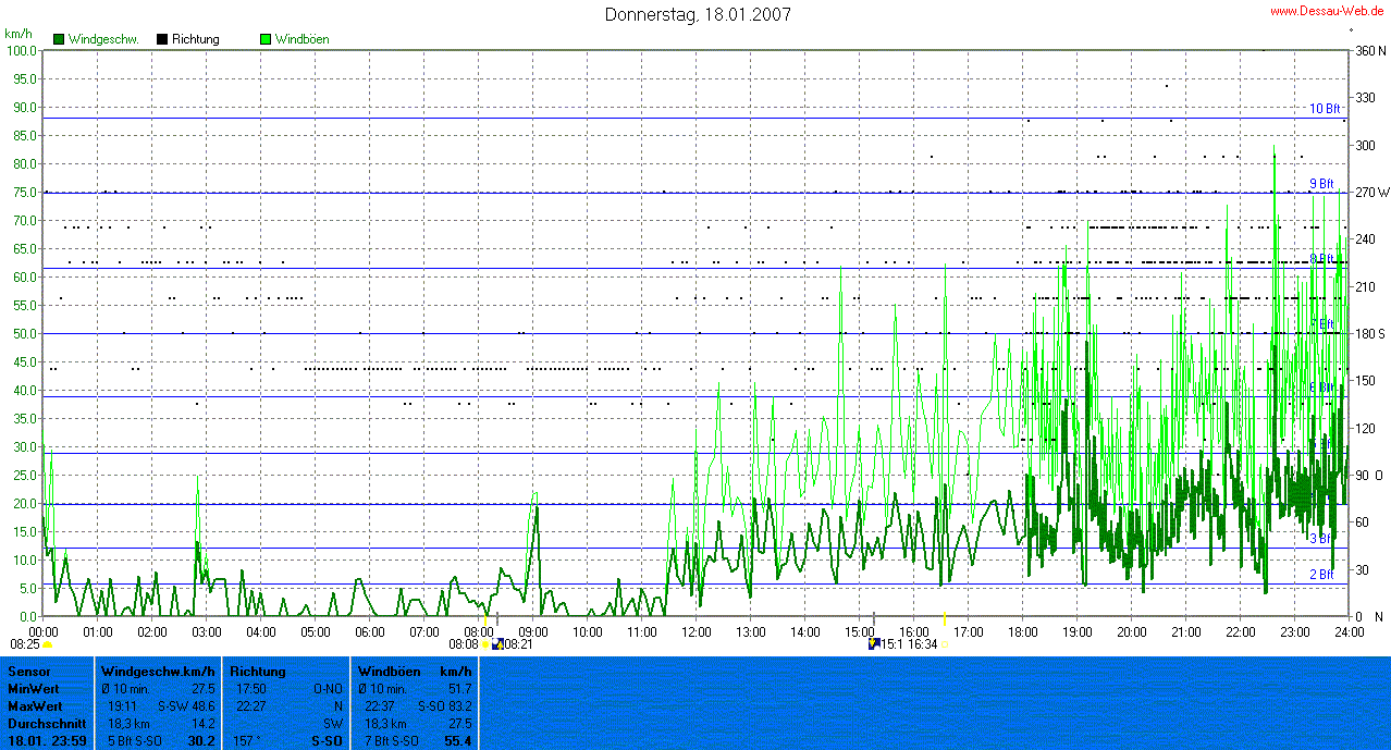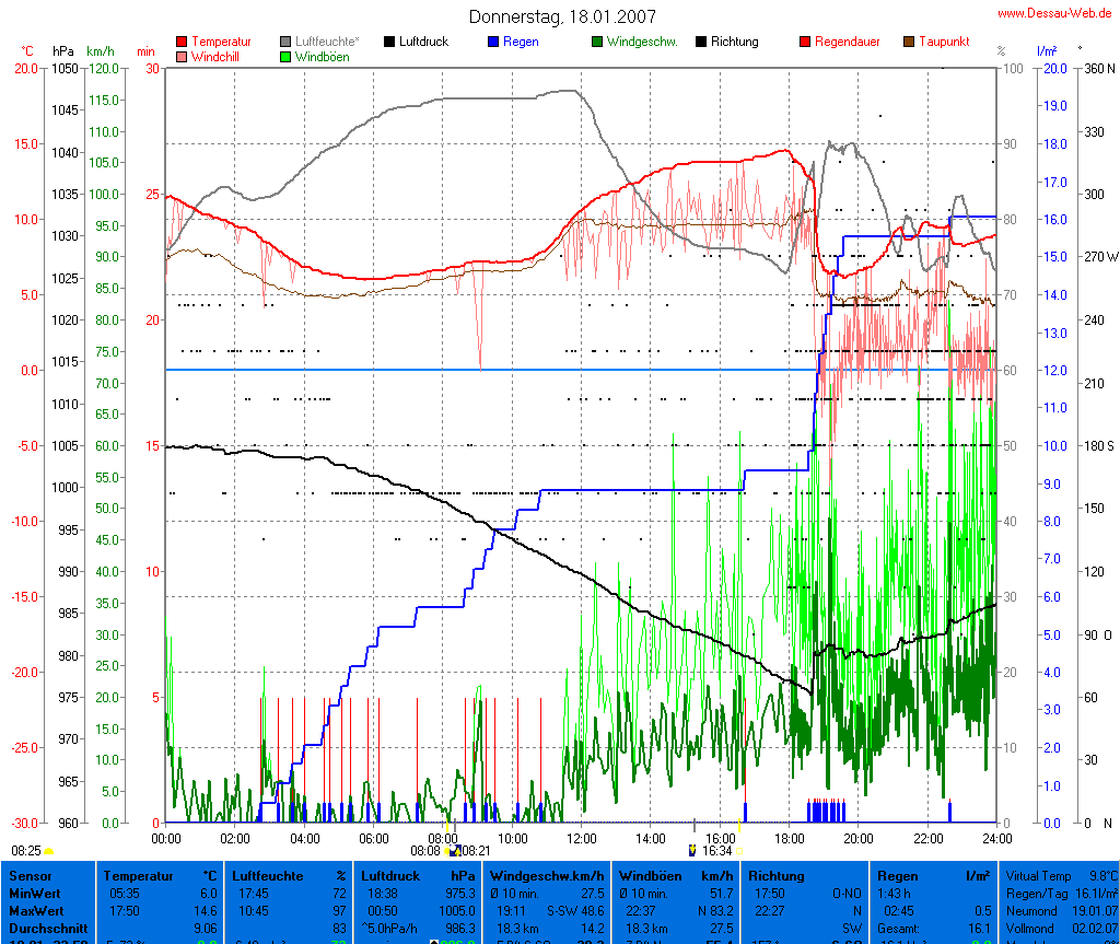 Das Sturmtief "Kyrill" tobte am 18.01.2007 vor allem ab 18 Uhr mit Windgeschwindigkeiten von mehr