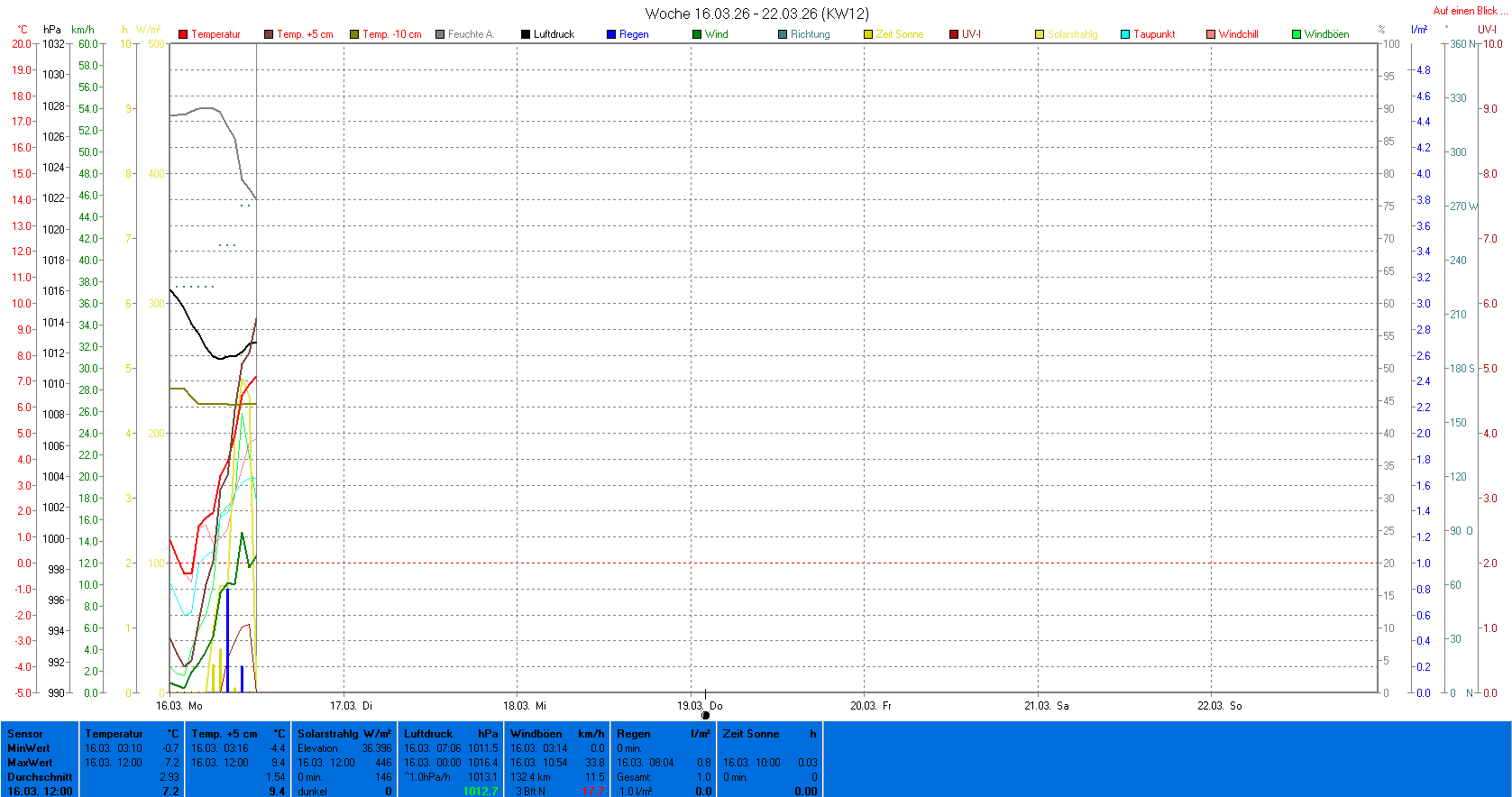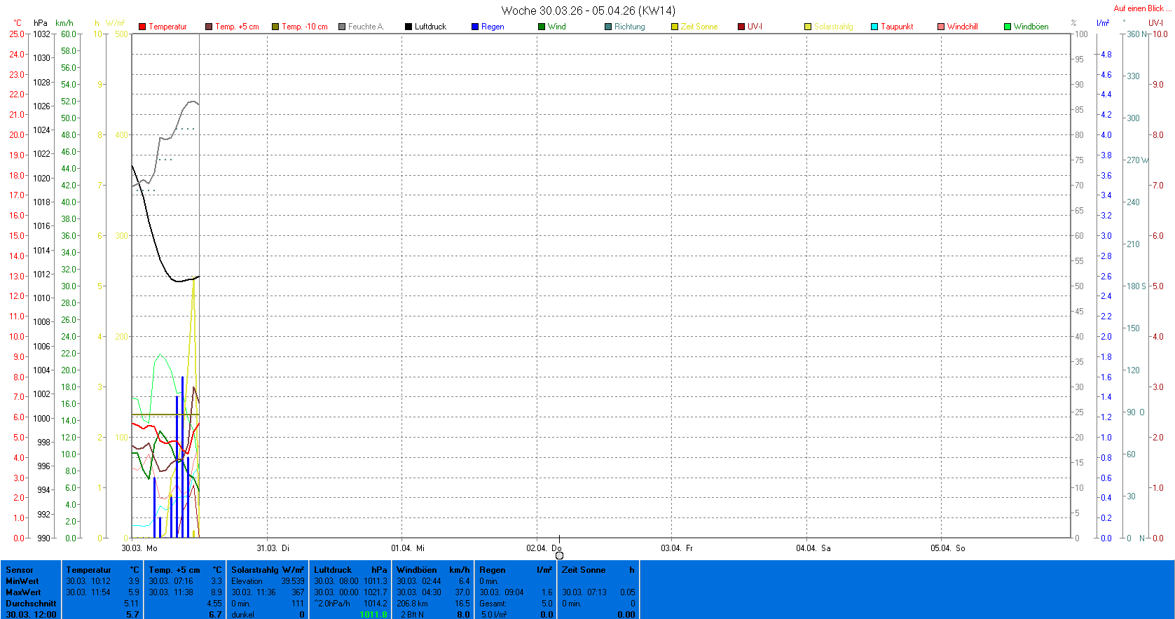 | Die dargestellten Werte repräsentieren die Daten des aktuellen Tages! Der Luftdruck ist auf Meereshöhe bezogen! |